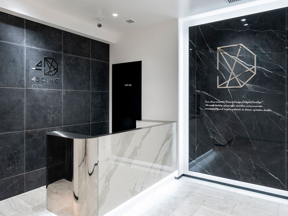 美容外科手術をメインとするクリニックだからこそ、清潔感を最優先にしつつ、シックで落ち着いた雰囲気を演出。高級感と快適さを兼ね備えた空間に仕上げています。